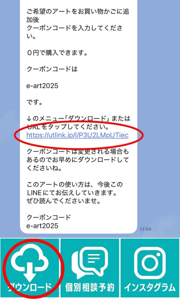 送られてくるURLか、または下のメニューの「ダウンロード」をタップ。
