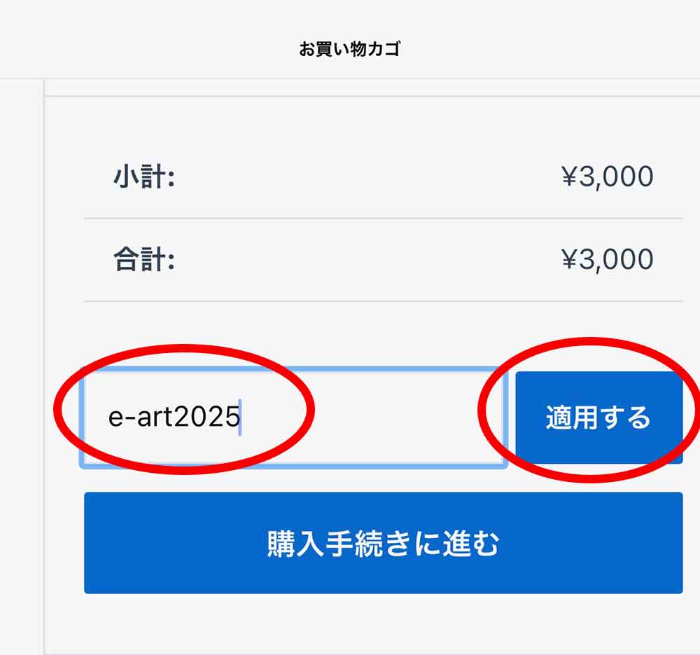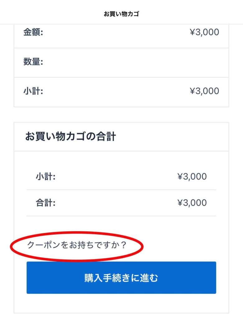 その後、お買い物かごに進むと「クーポンをお持ちですか?」の欄に、コピーしたクーポンを入力し、適用ボタンを押してください。