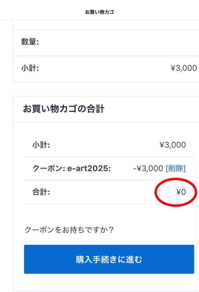 0円になっていない場合は、買い物かごの中身が1個になっていることを確認してください。