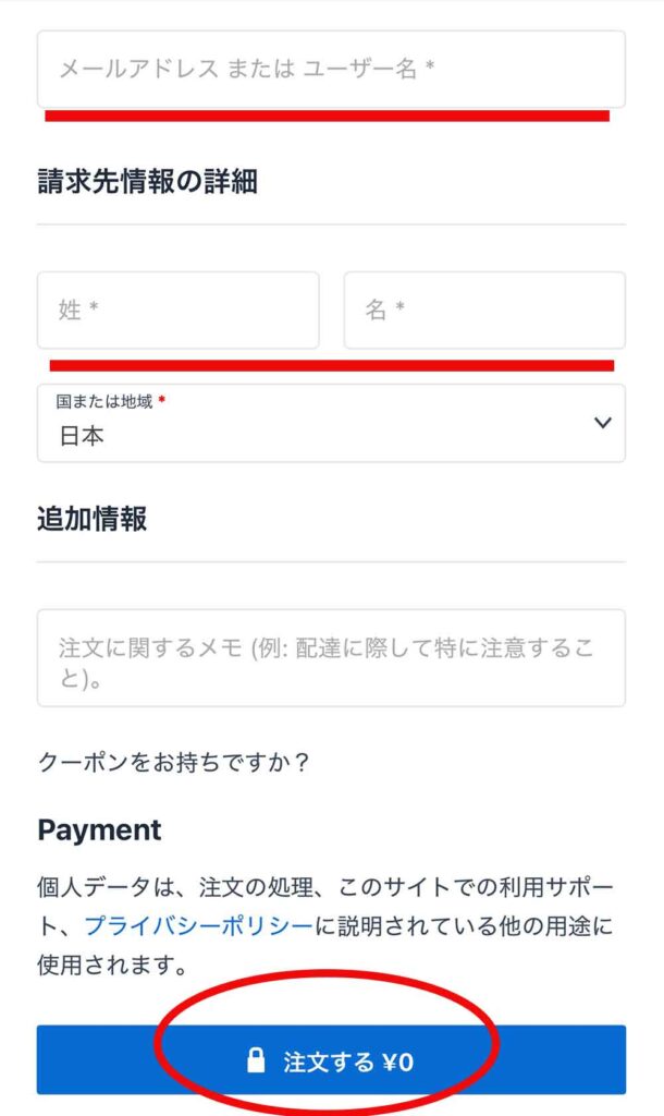 合計金額が0円になっていることを確認して、「注文する」ボタンをタップしてください。